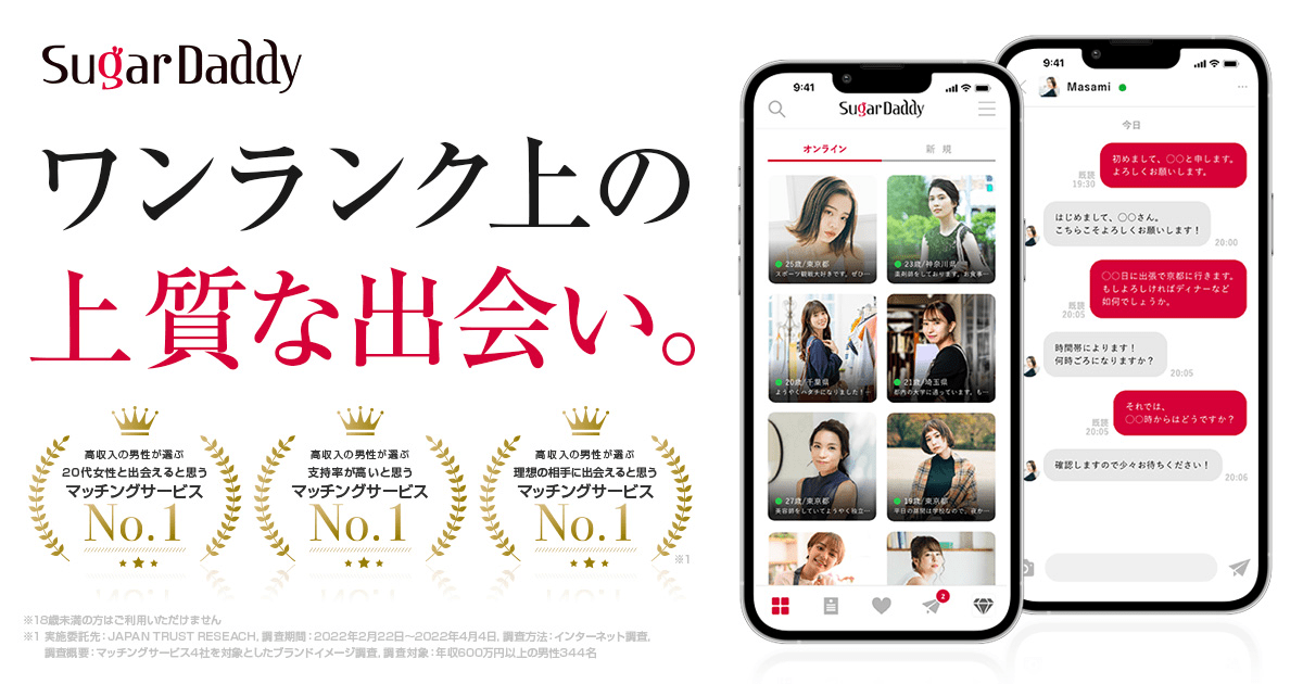 シュガーダディは高収入の男性に特化したマッチングサービスです。
